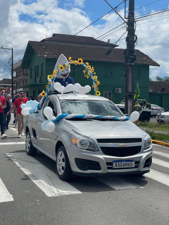 Entre os destaques, a Família Rotária de Timbó abordou o tema da erradicação da poliomielite, reforçando a importância da vacinação. A presença do personagem "Zé Gotinha", símbolo da campanha de vacinação no Brasil, emocionou o público ao levar uma mensagem de conscientização sobre salvar vidas. Com adereços temáticos, o grupo destacou os esforços globais do Rotary Internacional na luta contra a pólio, sensibilizando a comunidade sobre a importância da prevenção e combate a essa doença no Brasil e no mundo.