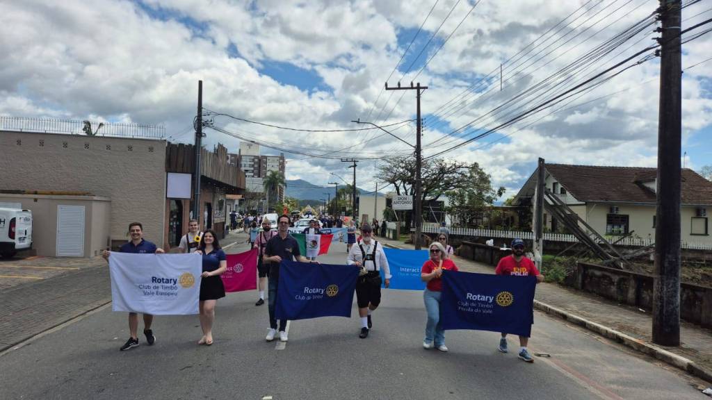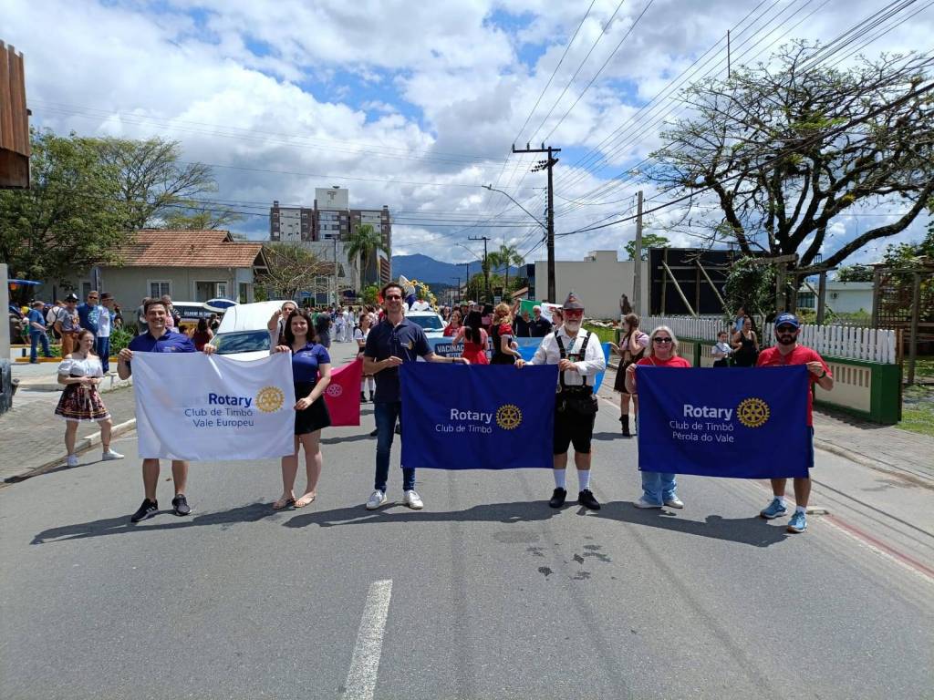O Rotary é uma organização global com mais de 1,2 milhão de membros espalhados por mais de 200 países, todos comprometidos com o serviço humanitário. Em Timbó, contamos com uma forte Família Rotária, composta pelo Rotary Club de Timbó, Rotary Club de Timbó Vale Europeu, Rotary Club de Timbó Pérola do Vale, Rotaract Club de Timbó Pérola do Vale e o Interact Club de Timbó. Juntos, os rotarianos e rotarianas trabalham nas sete áreas de enfoque do Rotary: paz e resolução de conflitos, prevenção de doenças, água potável e saneamento, saúde materno-infantil, educação, desenvolvimento econômico e apoio ao meio ambiente. Um dos maiores esforços do Rotary é a erradicação da poliomielite, em parceria com diversas organizações globais. Com dedicação e união, transformam vidas e promovem projetos que impactam positivamente a comunidade. Guiados pelo lema 'Dar de Si Antes de Pensar em Si', constroem um futuro mais justo e sustentável para todos. Parabéns, Timbó, pelos seus 155 anos! A Família Rotária se orgulha de fazer parte dessa história.